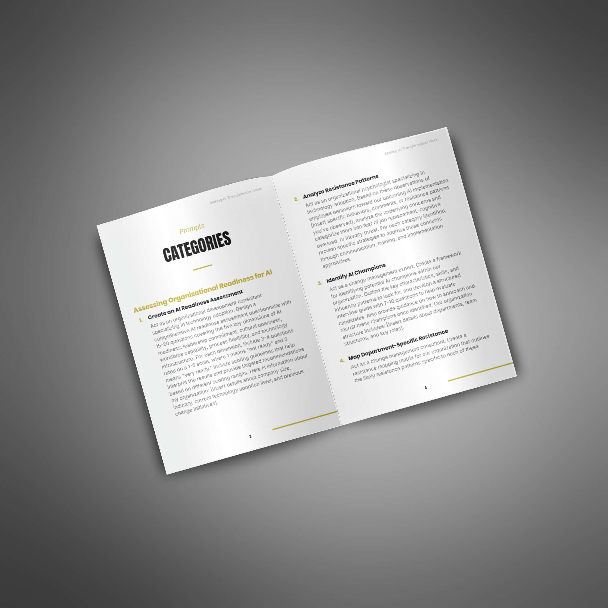 - Readiness Assessment Prompts – Evaluate your organization’s AI preparedness before investing resources, identifying gaps that could derail your transformation before you start
